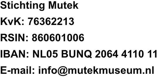 Mutek is een museum zonder structurele subsidie. Mocht u dit museum een warm hart toedragen dan zijn wij zeer blij met uw ondersteuning.